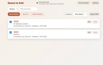 该工具需要 Anki Desktop 应用程序以及 AnkiConnect 插件,允许通过本地连接将创建的卡片直接发送到 Anki,从而实现无缝集成。值得注意的是,Queue to Anki 优先考虑用户隐私,仅在本地工作流程中操作,没有外部跟踪或分析。然而,用户应注意,在受限网页上(如 Chrome 设置或 Chrome 网上应用店中)文本选择可能无法正常工作。